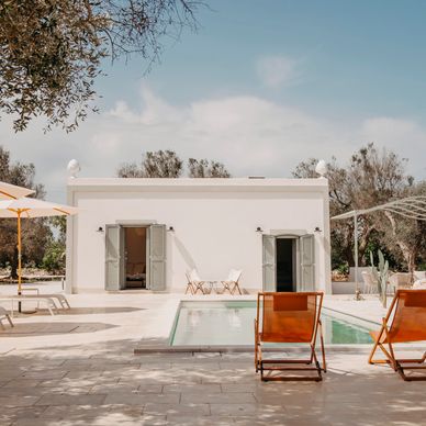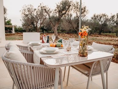 The pergola directly outside the Lamia is perfect for a small meal or a drink overlooking the pool and being very close to the garden. A very relaxing place to start your day.