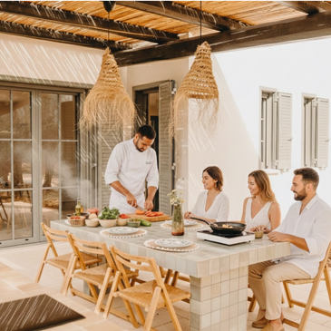 Enjoy the flavours of Puglia without leaving the comfort of Villa Normanni. A local chef will prepare an unforgettable menu in the villa’s outdoor kitchen, complemented by fresh herbs from our garden. A refined dining experience for family and friends framed by the beauty of the olive grove..